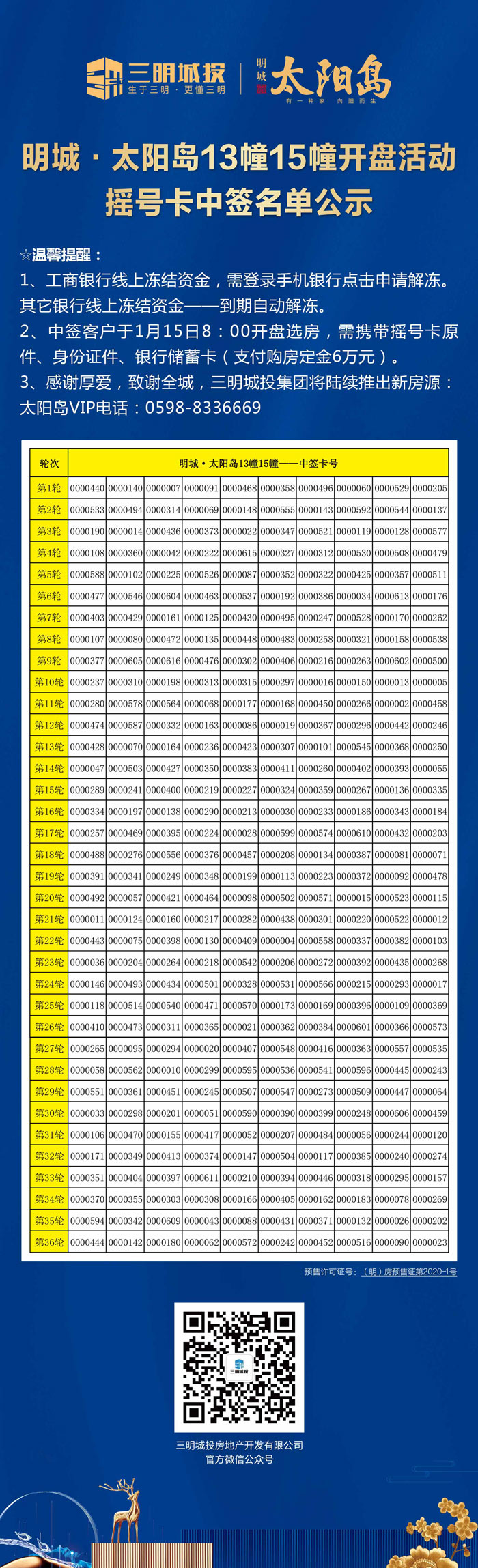 明城·太陽(yáng)島13幢15幢開(kāi)盤搖號(hào)卡中簽名單公示