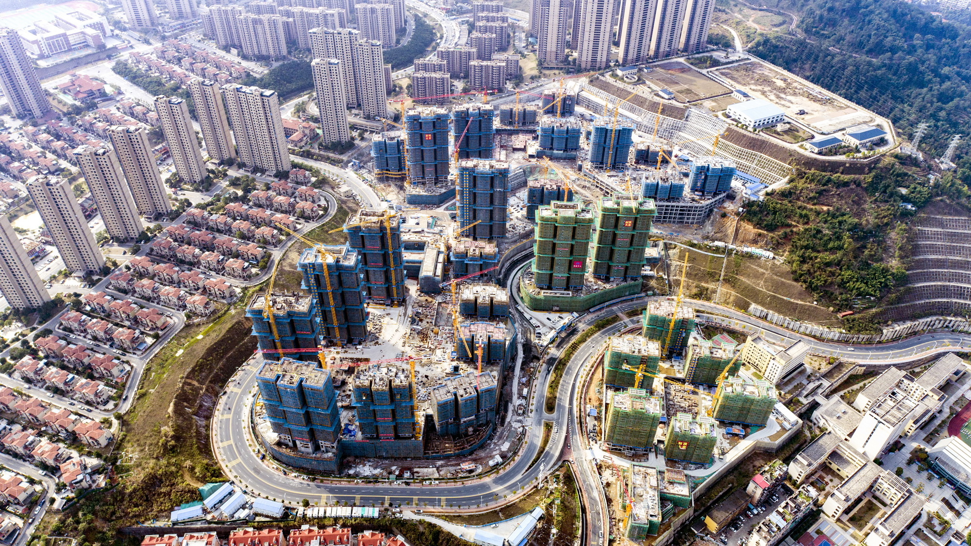 截至目前,本點(diǎn)A、C地塊:除C 地塊2#樓外,其余13棟樓全部封頂;外立面工程完成約75%,室內(nèi)工程同步進(jìn)行,落架完成約45%;甲頭B、C地塊:10棟樓主體結(jié)構(gòu)順利封頂,剩余16棟樓主體結(jié)構(gòu)完成約80%